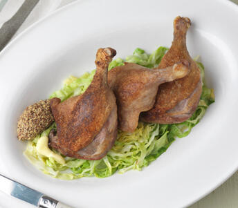 Great served with puy lentils and garlic sausage French style or with sautéed potatoes in the same duck fat and a bitter green salad with walnut vinaigrette.Method