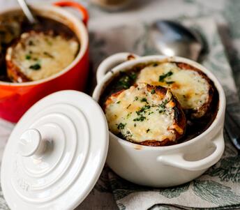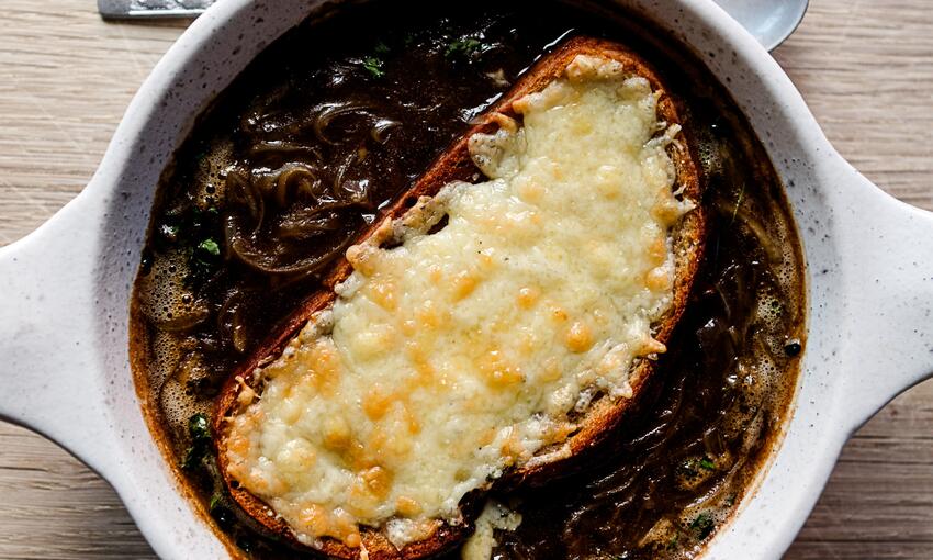 For a rich and unctuous onion soup topped with melting cheese toasts. A classic from the French culinary archives. Our version is super easy for those days you want something tasty without the fuss.Method