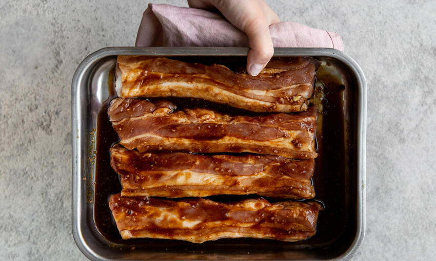 - Place the pork into a tray or zip bag with the remaining sauce covering the steaks completely and marinate in the fridge overnight
