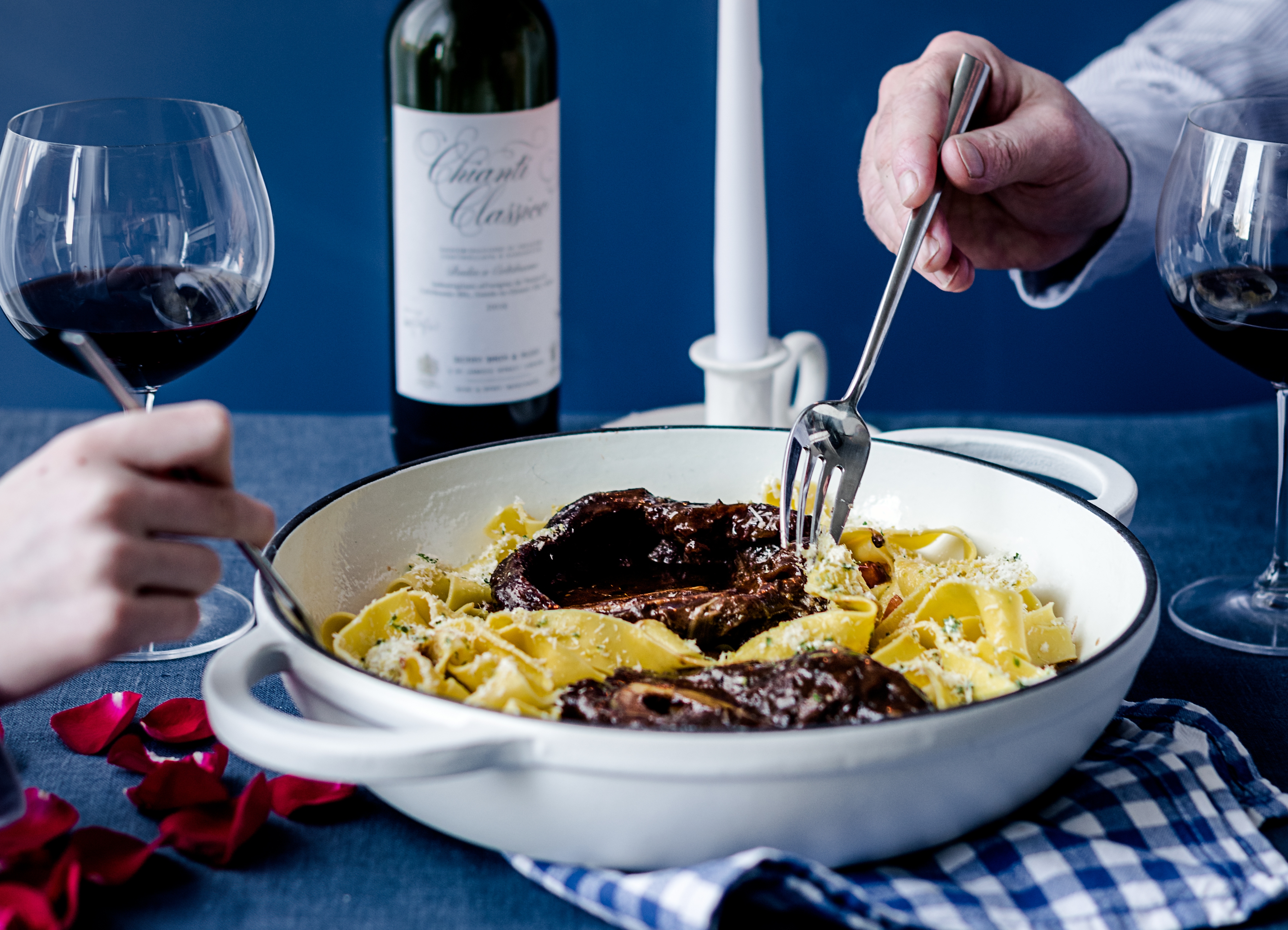 This romantic Italian-themed Valentine's Day box promises indulgence and warming, satisfying flavours. Featuring our take on the famous Milanese special of Osso Bucco, though made with beef not veal, your meat will arrive alongside artisan made La Tua pasta, for a rustic and hearty Italian-style dish. Osso Bucco literally means 'bone with a hole' and is famous for the slow cooking dish of the same name, while on our recipe card you will find a recipe for gremolata - the ideal accompaniment for this wonderful cut and the La Tua pasta. We have also included a bottle of Berry Brothers & Rudd Chianti to share between cooking with the Osso Bucco and for drinking alongside your romantic Valentine's Day dinner.