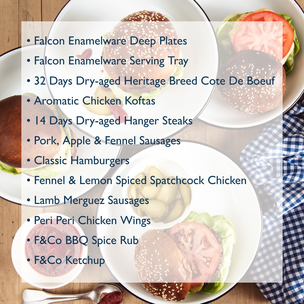 We've partnered with the icons of British home life, Falcon Enamelware, to give away FIVE bank holiday BBQ boxes to be enjoyed over the coming bank holiday weekend. Included in the boxes is: